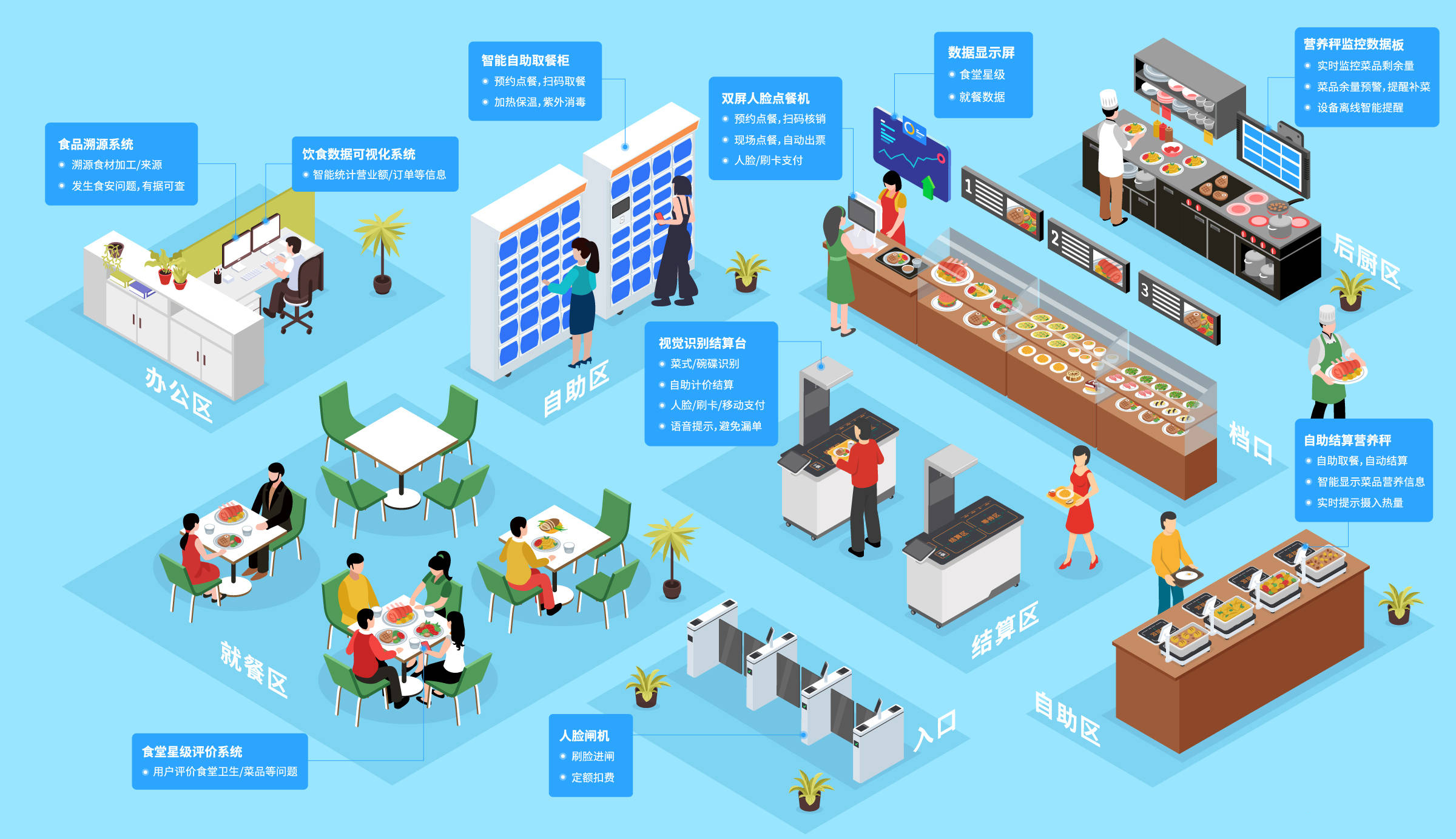 长者食堂的运营特色是以智能化技术为驱动。我们采用了AI称重系统,使长者能够通过手机、IC卡或人脸识别等方式自助取餐和自动进行结算。该系统以克数为单位计算每种菜品的重量,从而能够精确分析菜品的营养成分,为每位长者提供一份详细的营养报告。